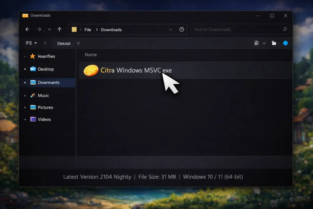 Once the download is complete, open your Downloads folder and locate the Citra Windows MSVC (.exe) file. Double-click the file to begin the installation process.